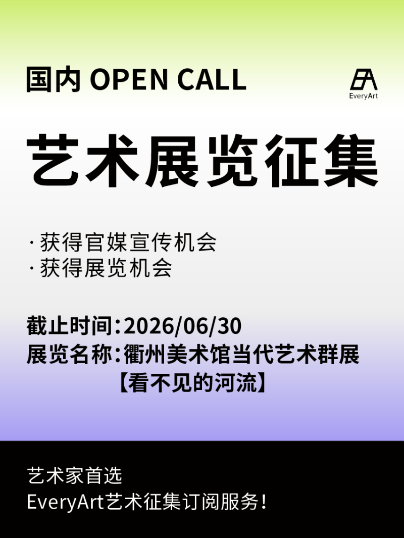 20260407OpenCall|衢州美术馆当代艺术群展【看不见的河流】链接:https://mp.weixin.qq.com/s/_3nUN18BMnhh7cuO0kDuKQ “看不见的河流”是由衢州美术馆发起的一场关于隐匿与记忆的古城游策行动。我们试图追溯衢州古城中被遗忘的水系与桥梁,并以公共活动与多种艺术形式的交叉流通让水成为记忆的载体。 先有事件的发生、人的汇聚与互通,再产生文本、影像、声音、装置、行为等等,让不再可见的河流在今天再次显现并流动。我们期待通过多元媒介与跨领域实践的感性触达,连接起城市的过去与未来,让历史水脉重新成为当代公共记忆的源泉。 从今年年初开始,我们已经在一次集体行走中尝试了“追迹考现”;在一场“开放对谈”里探讨了地方记忆如何被想象;直至7月,从同一母题不同切面展开的“记忆与影像”“艺术共创”“社区回响”也都将陆续在衢城各处落地。 而后,同名当代艺术群展【看不见的河流】将作为整个项目的收束、于2026年8月至9月(暂定)在衢州美术馆呈现。 我们在此邀请各领域创作者以多元媒介与视角——追溯河流的物理痕迹与精神流变;重新聆听、触摸、看见隐蔽的河流;回应关于消失与在场、流动与变迁的疑问;重现或再造水文记忆——以各自的方式抵达那些看不见的河流。 不限于衢州本地艺术家,对所有关注/有意关注衢州地域文化的创作者/艺术小组/跨学科团队开放。作品可围绕以下维度展开(包括但不限于):1.消失与在场那些被填埋、被覆盖的河流现在去了哪里?消失的物理实体以何种形式或方式继续存在于城市肌理之中?艺术家可结合对河流遗址的考察、对地下空间的想象等等,呈现“消失”与“在场”的辩证关系。2.水文记忆河流承载着城市历史、民间传说、个体经验,艺术语言又如何以口述史、档案整理、影像记录、声音采样等方式重述一座城、一群人的水文记忆。3.流动与变迁水是流动的,城市也是,河流的变迁史往往也指向城市的变迁史。作品可探讨水与人、水与城市、水与权力的动态关系,追问自然与人工、保留与发展的边界,城市与生态变迁的痕迹如何被河流承载或转化。本展览接受以下形式的作品:·平面类绘画、版画、摄影等·装置类雕塑、装置(需附安装说明及空间要求)·多媒体艺术影像、声音、数字交互、VR/AR、复合媒介·文本类诗歌、口述史、田野笔记、档案、文献等·行为艺术行为、即兴表演等(需附方案说明及场地要求,或提供实录视频)·研究型/跨学科项目城市调研、介入性艺术、在地实践等(需附方案说明及场地要求)1.原创!!投稿作品须为原创,不涉任何知识产权纠纷。如作品涉及人工智能生成内容,需说明使用情况。2.所需材料(标*项为必需项)*①作者简介:个人/团体简介(200字以内),须附联系方式*②作品信息:作品名、创作年份、材质、尺寸,及作品简介(300字以内)*③视觉材料:图(JPG/PNG格式,单张不超过10MB)或视频(MP4格式,不低于1080p;或提供视频链接)④方案说明:如需现场制作或有特殊安装要求,请附详细说明以上材料请分别以“作者简介/作品信息/视觉材料/方案说明+作者姓名”命名3.压缩包发送最终请发送以“作品名+作者姓名”命名的压缩包文件,其中应至少包含上述前3项材料。·投稿邮箱:youshuialive@163.com·邮件主题:“作者姓名+看不见的河流投稿”·截止时间:2026年6月30日24:00(入选通知将于26年7月7日17:00前发送完毕)1.本展览不收取任何参展、宣发费用2.入选作品将在衢州美术馆展出3.展览将对参展作品进行数据收集和档案整理4.展览将通过衢州美术馆官媒及合作媒体进行联合宣传1.主办方有权对参展作品进行摄影、录像等宣传使用2.投稿即视为同意本征稿启事之所有规定3.本征稿及展览相关事宜最终解释权归衢州美术馆所有*欢迎各位创作者参与【看不见的河流】前置系列活动收集素材和灵感,详情请关注公众号“衢州文化馆”及“有水ALIVE”的相关发布。