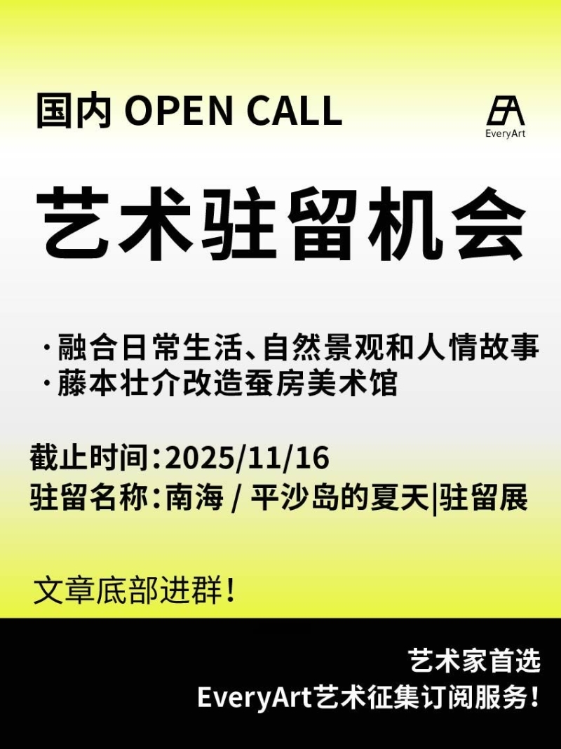 2025-09-03 临期|征集资讯 #国内艺术驻留 #艺术驻留 0 评论 90 喜欢 分享 白雪松 自我介绍一下吧~ 查看TA的全部内容 +关注 EveryArt 去发现更多有趣内容 微信扫码打开EveryArt小程序 体验更多「EveryArt」新功能 评论 0 我也来讲两句