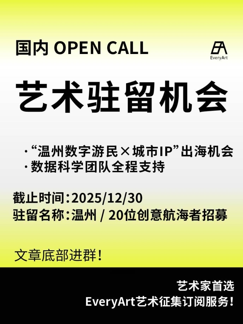 2025-09-05 全球|艺术驻留 #国内艺术驻留 #艺术驻留 0 评论 69 喜欢 分享 白雪松 自我介绍一下吧~ 查看TA的全部内容 +关注 EveryArt 去发现更多有趣内容 微信扫码打开EveryArt小程序 体验更多「EveryArt」新功能 评论 0 我也来讲两句