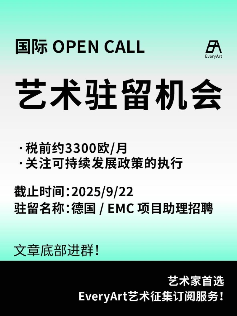 2025-09-12 临期|征集资讯 #艺术驻留 #国际艺术驻留 0 评论 75 喜欢 分享 白雪松 自我介绍一下吧~ 查看TA的全部内容 +关注 EveryArt 去发现更多有趣内容 微信扫码打开EveryArt小程序 体验更多「EveryArt」新功能 评论 0 我也来讲两句