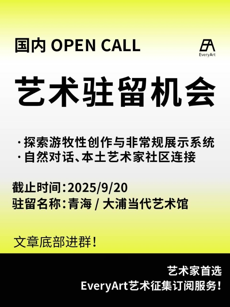 2025-09-15 临期|征集资讯 #国内艺术驻留 #艺术驻留 0 评论 50 喜欢 分享 白雪松 自我介绍一下吧~ 查看TA的全部内容 +关注 EveryArt 去发现更多有趣内容 微信扫码打开EveryArt小程序 体验更多「EveryArt」新功能 评论 0 我也来讲两句