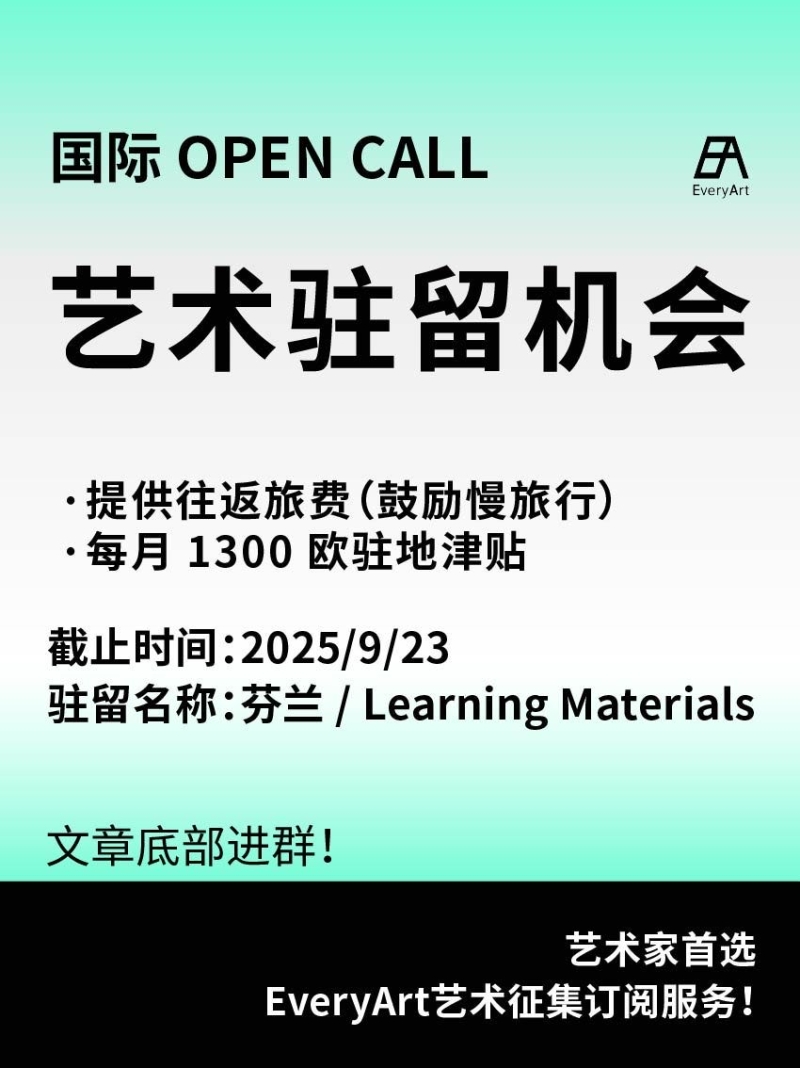 2025-09-17 临期|征集资讯 #艺术驻留 #国际艺术驻留 0 评论 58 喜欢 分享 白雪松 自我介绍一下吧~ 查看TA的全部内容 +关注 EveryArt 去发现更多有趣内容 微信扫码打开EveryArt小程序 体验更多「EveryArt」新功能 评论 0 我也来讲两句