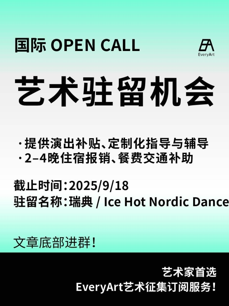 2025-09-17 临期|征集资讯 #艺术驻留 #国际艺术驻留 0 评论 59 喜欢 分享 白雪松 自我介绍一下吧~ 查看TA的全部内容 +关注 EveryArt 去发现更多有趣内容 微信扫码打开EveryArt小程序 体验更多「EveryArt」新功能 评论 0 我也来讲两句