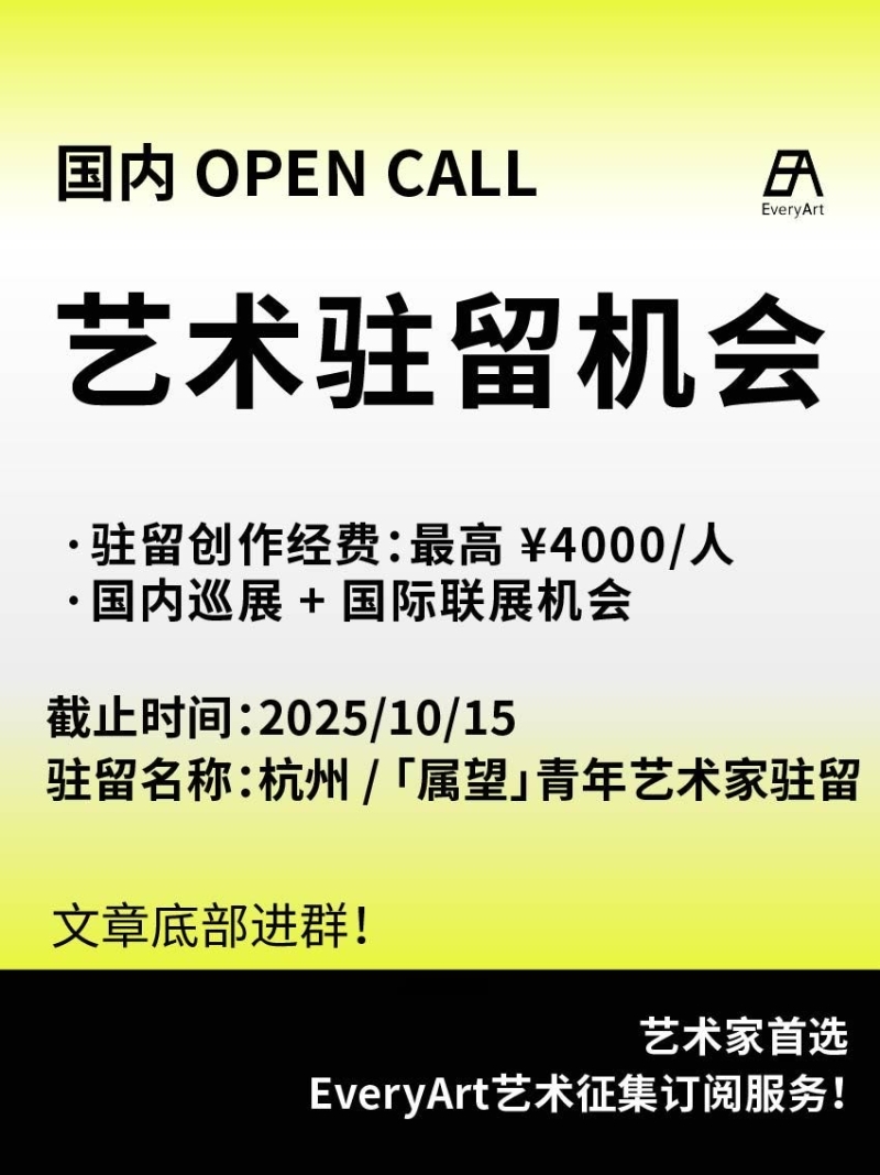 2025-09-17 优选 | 征集项目 #国内艺术驻留 #艺术驻留 0 评论 50 喜欢 分享 白雪松 自我介绍一下吧~ 查看TA的全部内容 +关注 EveryArt 去发现更多有趣内容 微信扫码打开EveryArt小程序 体验更多「EveryArt」新功能 评论 0 我也来讲两句