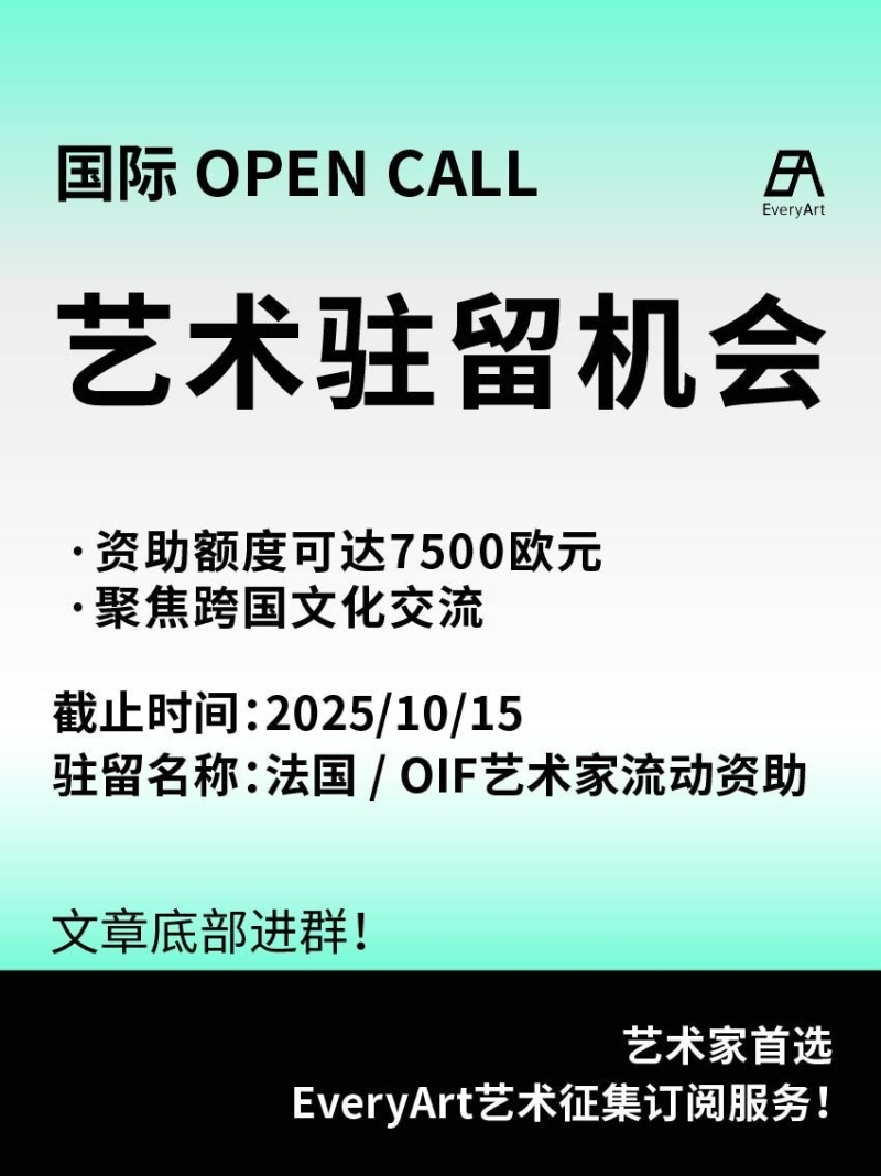2025-09-21 临期|征集资讯 #艺术驻留 #国际艺术驻留 0 评论 73 喜欢 分享 白雪松 自我介绍一下吧~ 查看TA的全部内容 +关注 EveryArt 去发现更多有趣内容 微信扫码打开EveryArt小程序 体验更多「EveryArt」新功能 评论 0 我也来讲两句