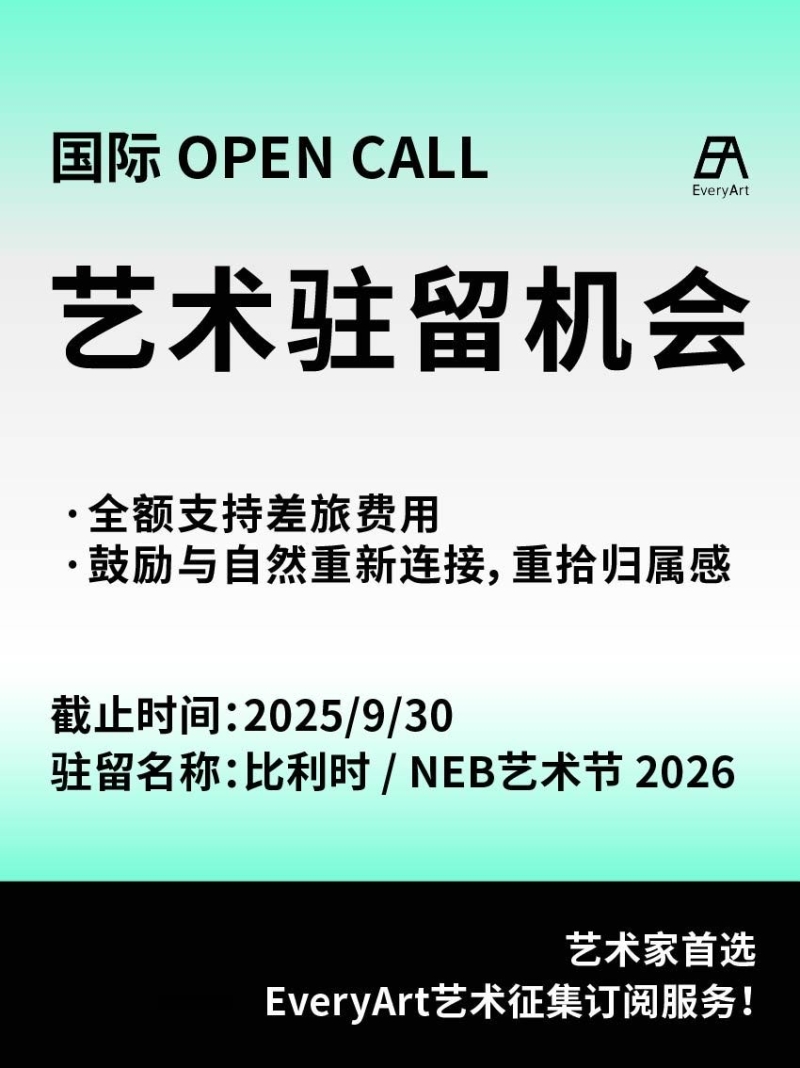 2025-09-21 临期|征集资讯 #艺术驻留 #国际艺术驻留 0 评论 46 喜欢 分享 白雪松 自我介绍一下吧~ 查看TA的全部内容 +关注 EveryArt 去发现更多有趣内容 微信扫码打开EveryArt小程序 体验更多「EveryArt」新功能 评论 0 我也来讲两句