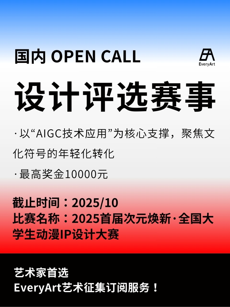 2025-09-21 临期|征集资讯 #艺术大奖 #国内艺术大奖 #设计大奖 #艺术赛事 0 评论 63 喜欢 分享 HZZZZZ 自我介绍一下吧~ 查看TA的全部内容 +关注 EveryArt 去发现更多有趣内容 微信扫码打开EveryArt小程序 体验更多「EveryArt」新功能 评论 0 我也来讲两句