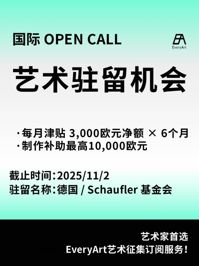 2025-09-21 临期|征集资讯 #艺术驻留 #国际艺术驻留 0 评论 70 喜欢 分享 白雪松 自我介绍一下吧~ 查看TA的全部内容 +关注 EveryArt 去发现更多有趣内容 微信扫码打开EveryArt小程序 体验更多「EveryArt」新功能 评论 0 我也来讲两句