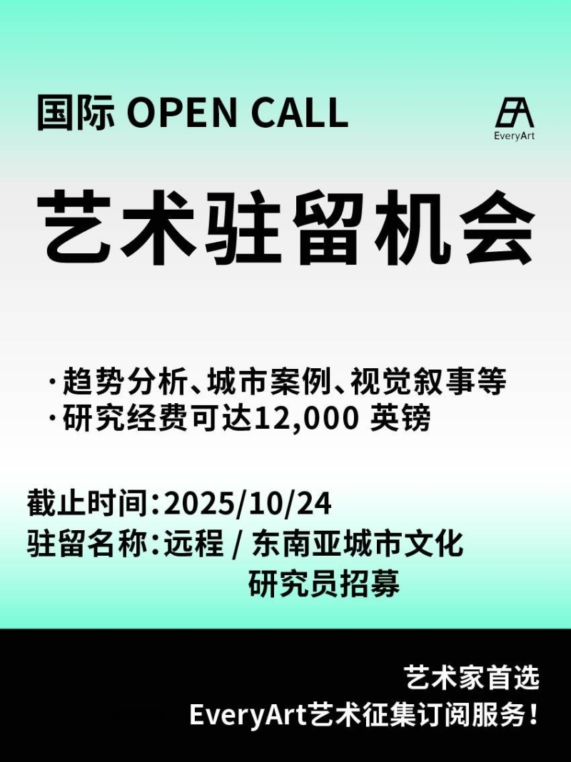 2025-09-24 临期|征集资讯 #艺术驻留 #国际艺术驻留 0 评论 60 喜欢 分享 白雪松 自我介绍一下吧~ 查看TA的全部内容 +关注 EveryArt 去发现更多有趣内容 微信扫码打开EveryArt小程序 体验更多「EveryArt」新功能 评论 0 我也来讲两句