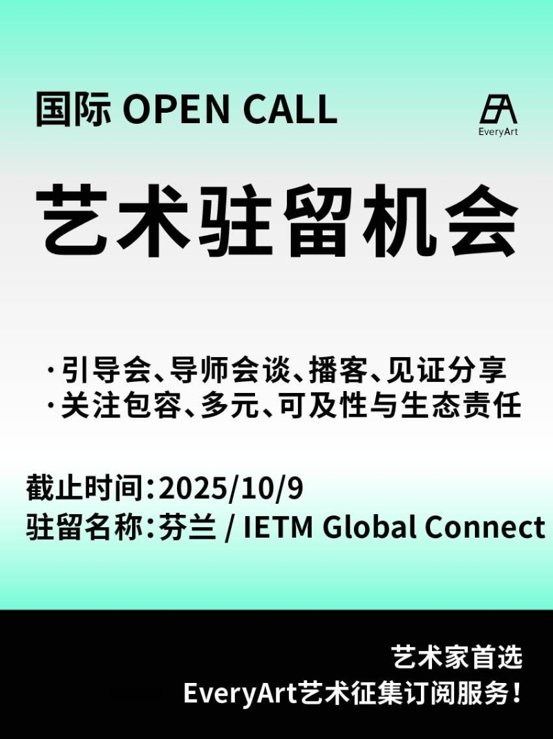 2025-09-27 临期|征集资讯 #艺术驻留 #国际艺术驻留 0 评论 54 喜欢 分享 白雪松 自我介绍一下吧~ 查看TA的全部内容 +关注 EveryArt 去发现更多有趣内容 微信扫码打开EveryArt小程序 体验更多「EveryArt」新功能 评论 0 我也来讲两句