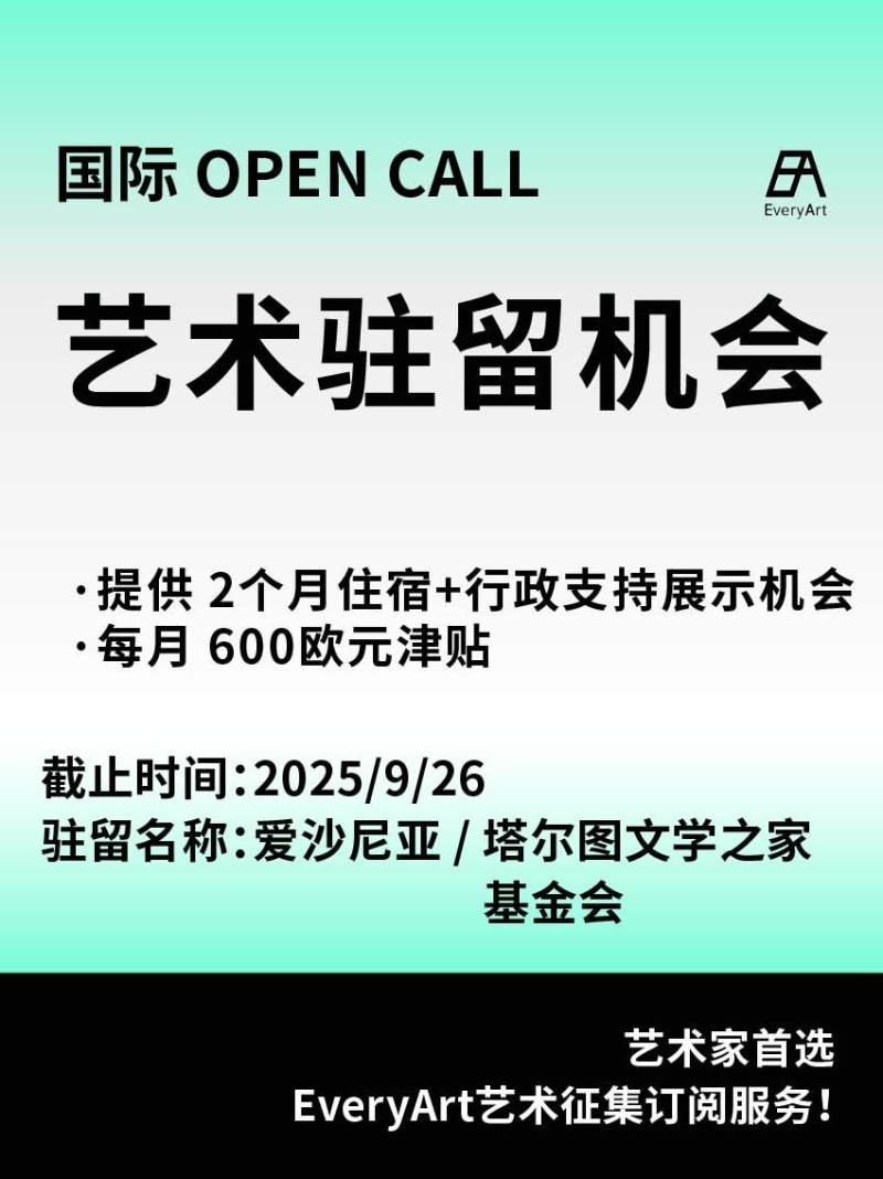 2025-09-27 临期|征集资讯 #艺术驻留 #国际艺术驻留 0 评论 60 喜欢 分享 白雪松 自我介绍一下吧~ 查看TA的全部内容 +关注 EveryArt 去发现更多有趣内容 微信扫码打开EveryArt小程序 体验更多「EveryArt」新功能 评论 0 我也来讲两句