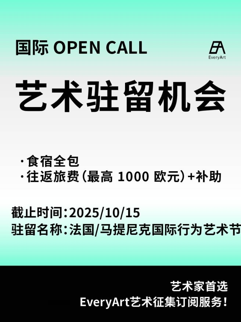 2025-09-27 临期|征集资讯 #艺术驻留 #国际艺术驻留 0 评论 59 喜欢 分享 白雪松 自我介绍一下吧~ 查看TA的全部内容 +关注 EveryArt 去发现更多有趣内容 微信扫码打开EveryArt小程序 体验更多「EveryArt」新功能 评论 0 我也来讲两句