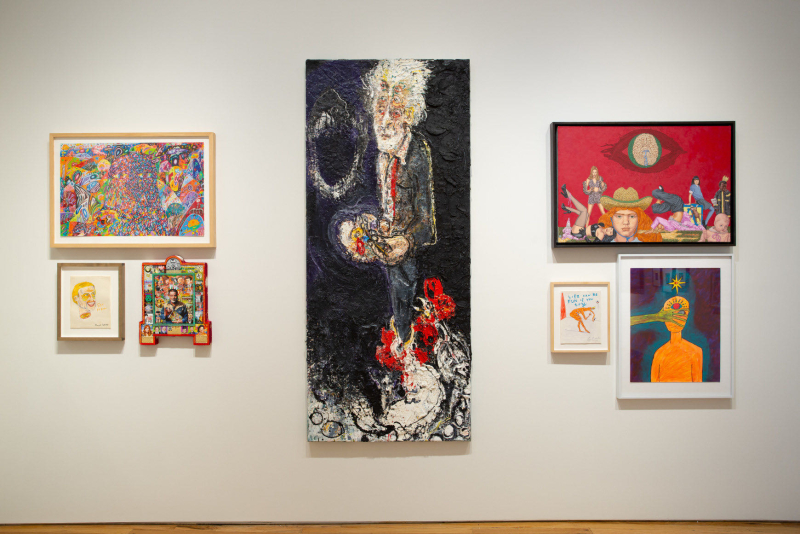 ◾️部分参展艺术家简介: Guo Fengyi(郭凤怡):中国民间灵性绘画代表人物,她的作品常通过身体通灵与能量流动为主题,以细密笔触绘制灵光结构。 Paulina Peavy:将精神引导与神秘主义结合,创造出跨时空、宇宙性别的异象生物,融合神话、宇宙学与未来主义。 Joe Coleman:以极繁主义细节再现社会异化人物及地下文化现象,常以自画像与超现实画面构成多重象征系统。 Frank Big Bear:以美洲原住民文化为根基,将都市景观、部落图腾与个人幻想融合,构建出跨文化叙事风格。 Sue Coe:知名的社会批判型艺术家,以激烈图像风格揭示种族、阶级、性别与动物权利等议题。 Eugene Von Bruenchenhein:业余创作者,其抽象绘画与摄影作品展现出独特的超现实幻想与结构美感。 Fred Tomaselli:以拼贴方式结合花卉、药丸、昆虫与人像等图像元素,构建充满致幻感的视觉体验。 每位艺术家的作品都不约而同地回应了“黑暗、直觉、神秘、意识”这一展览内核。