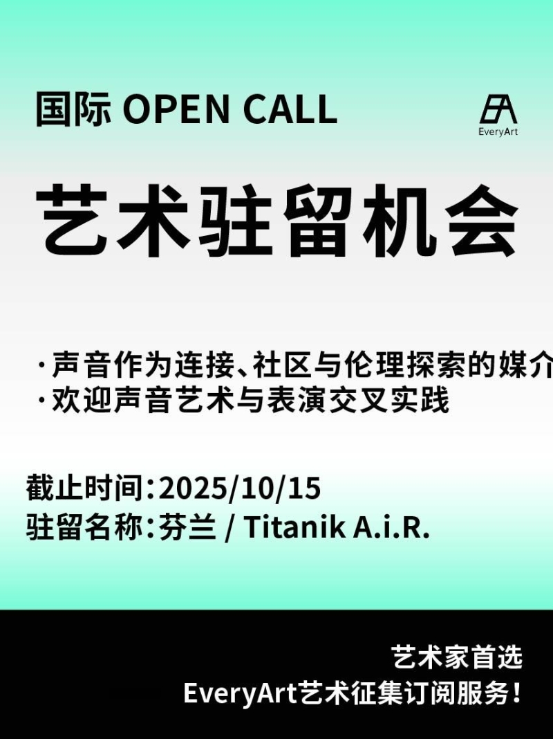 2025-10-04 临期|征集资讯 #艺术驻留 #国际艺术驻留 0 评论 53 喜欢 分享 白雪松 自我介绍一下吧~ 查看TA的全部内容 +关注 EveryArt 去发现更多有趣内容 微信扫码打开EveryArt小程序 体验更多「EveryArt」新功能 评论 0 我也来讲两句