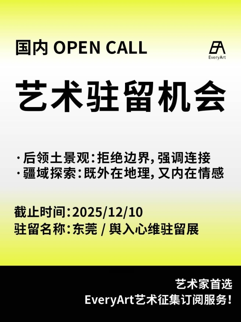 2025-10-04 临期|征集资讯 #国内艺术驻留 #艺术驻留 0 评论 41 喜欢 分享 白雪松 自我介绍一下吧~ 查看TA的全部内容 +关注 EveryArt 去发现更多有趣内容 微信扫码打开EveryArt小程序 体验更多「EveryArt」新功能 评论 0 我也来讲两句