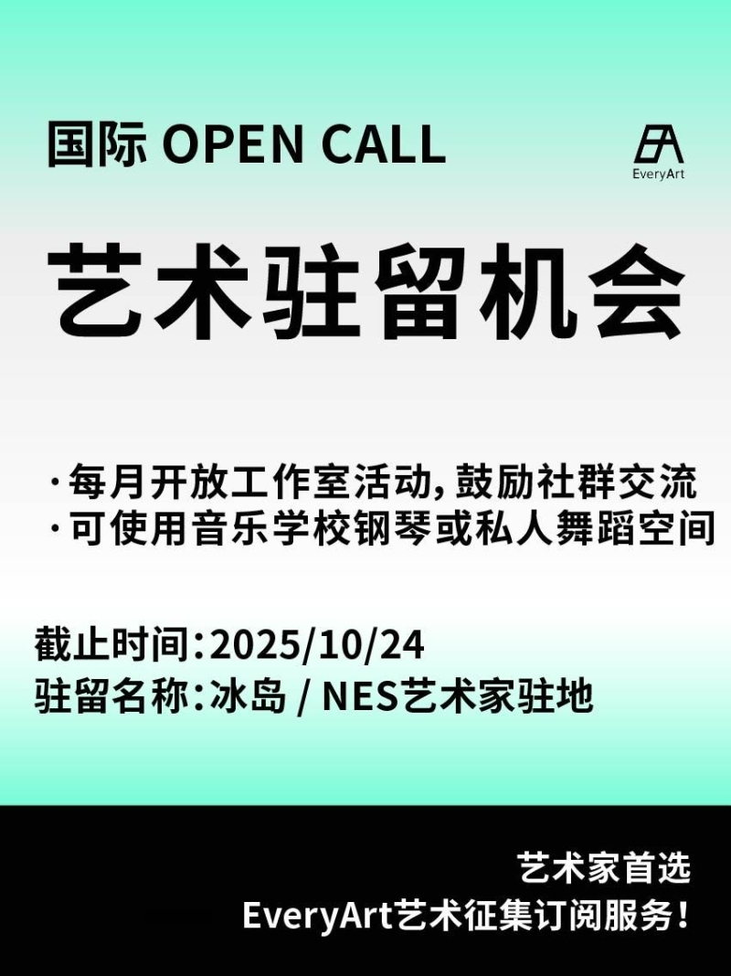 2025-10-06 临期|征集资讯 #艺术驻留 #国际艺术驻留 0 评论 58 喜欢 分享 白雪松 自我介绍一下吧~ 查看TA的全部内容 +关注 EveryArt 去发现更多有趣内容 微信扫码打开EveryArt小程序 体验更多「EveryArt」新功能 评论 0 我也来讲两句