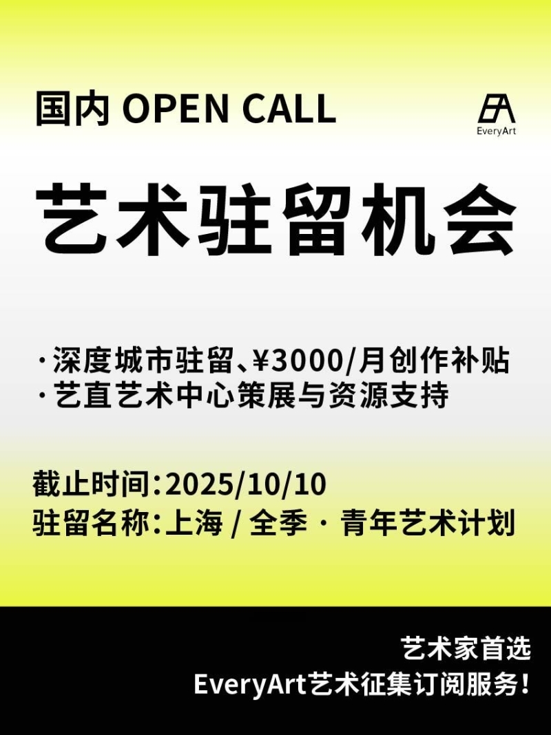 2025-10-06 临期|征集资讯 #国内艺术驻留 #艺术驻留 0 评论 66 喜欢 分享 白雪松 自我介绍一下吧~ 查看TA的全部内容 +关注 EveryArt 去发现更多有趣内容 微信扫码打开EveryArt小程序 体验更多「EveryArt」新功能 评论 0 我也来讲两句