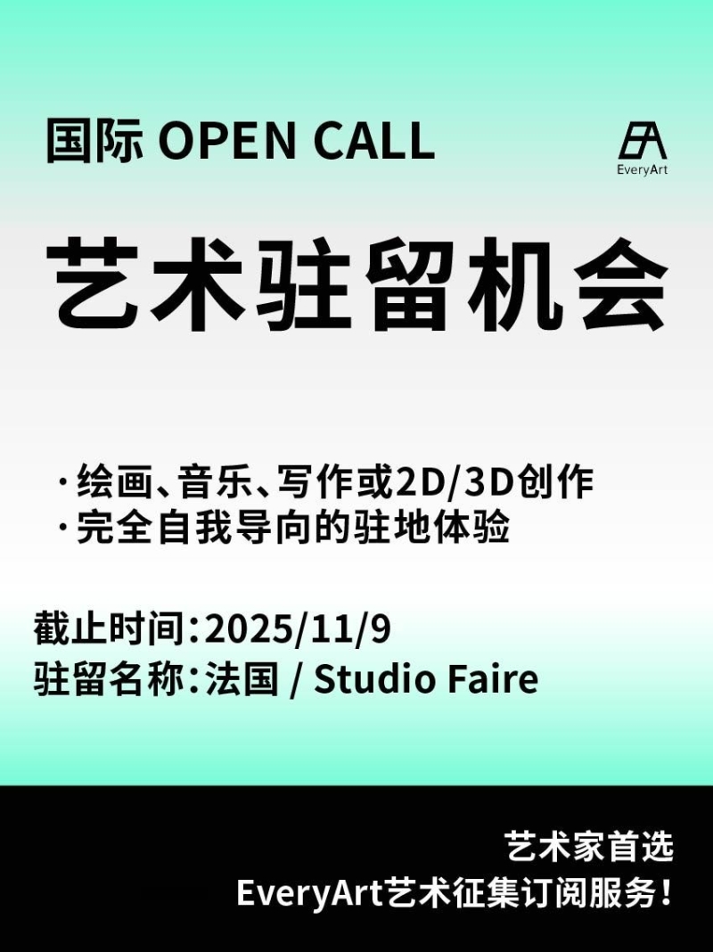 2025-10-12 临期|征集资讯 #艺术驻留 #国际艺术驻留 0 评论 56 喜欢 分享 白雪松 自我介绍一下吧~ 查看TA的全部内容 +关注 EveryArt 去发现更多有趣内容 微信扫码打开EveryArt小程序 体验更多「EveryArt」新功能 评论 0 我也来讲两句