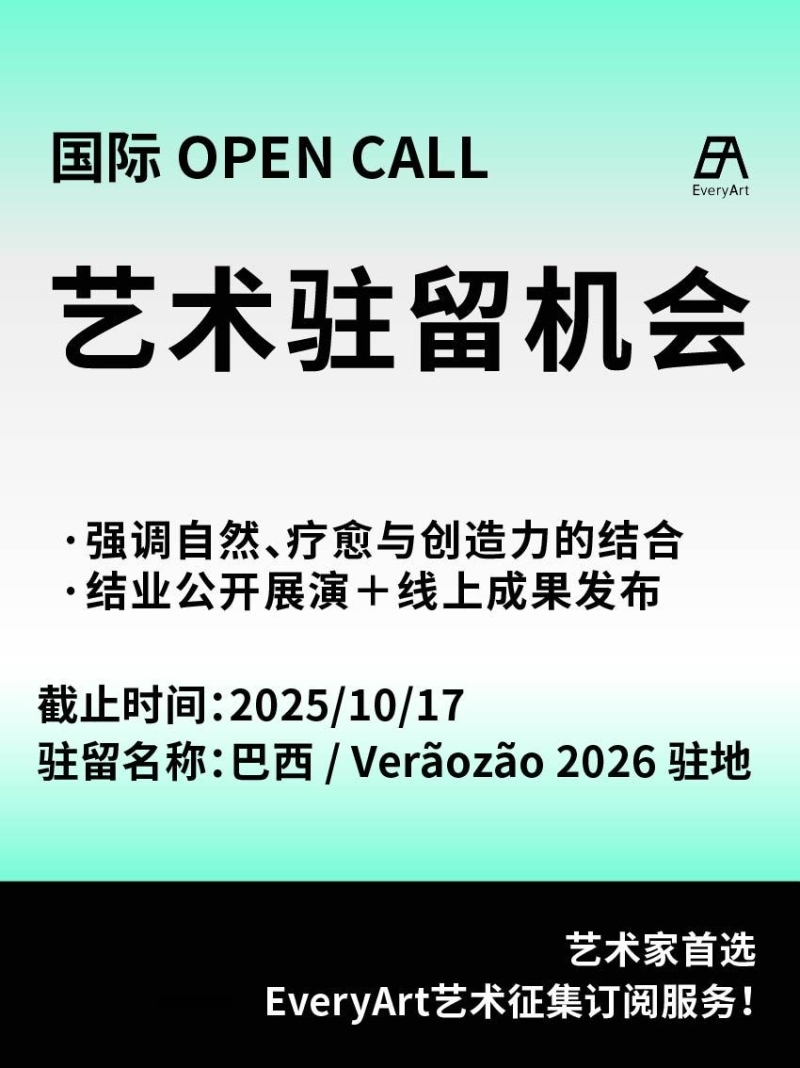 2025-10-12 临期|征集资讯 #艺术驻留 #国际艺术驻留 0 评论 51 喜欢 分享 白雪松 自我介绍一下吧~ 查看TA的全部内容 +关注 EveryArt 去发现更多有趣内容 微信扫码打开EveryArt小程序 体验更多「EveryArt」新功能 评论 0 我也来讲两句