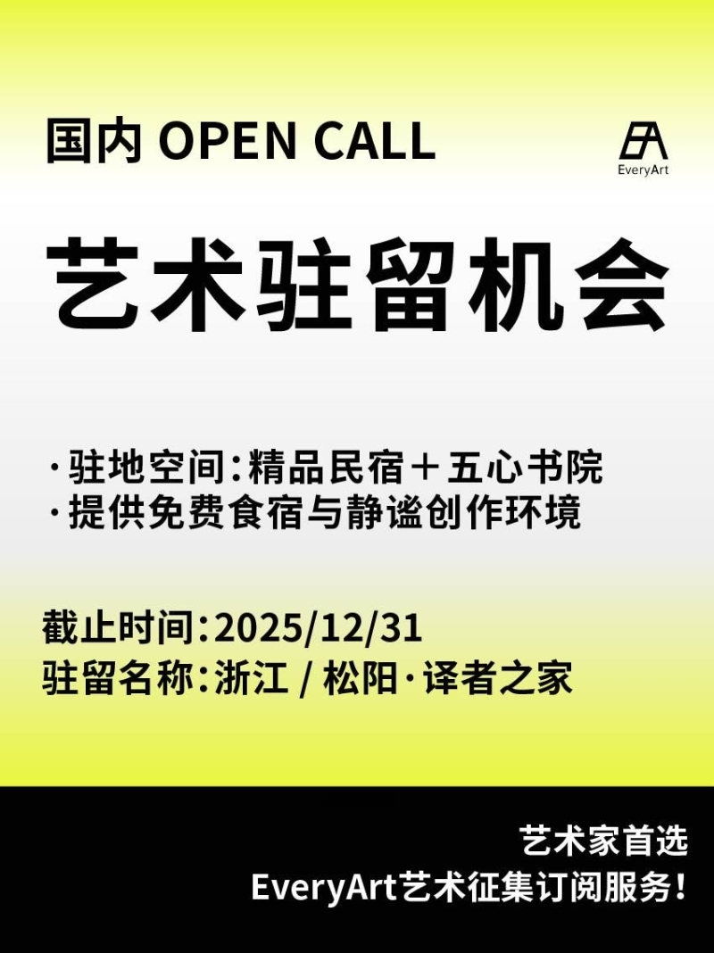 2025-10-12 全球|艺术驻留 #艺术驻留 #国际艺术驻留 0 评论 61 喜欢 分享 白雪松 自我介绍一下吧~ 查看TA的全部内容 +关注 EveryArt 去发现更多有趣内容 微信扫码打开EveryArt小程序 体验更多「EveryArt」新功能 评论 0 我也来讲两句