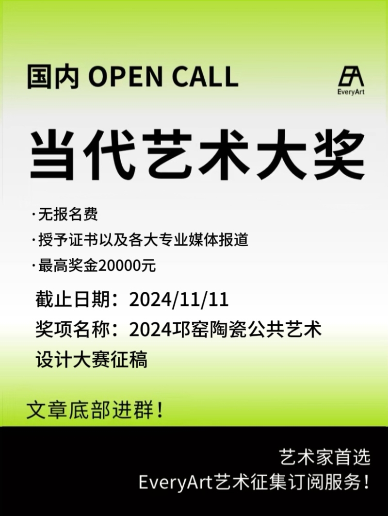 2024-10-13 全球|艺术奖项 #艺术大奖 #国内艺术大奖 0 评论 137 喜欢 分享 茶茶 自我介绍一下吧~ 查看TA的全部内容 +关注 EveryArt 去发现更多有趣内容 微信扫码打开EveryArt小程序 体验更多「EveryArt」新功能 评论 0 我也来讲两句