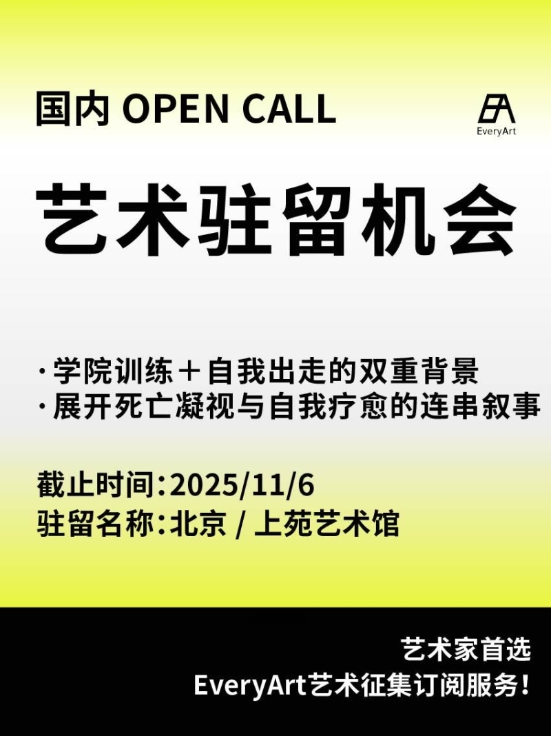 2025-10-31 临期|征集资讯 #国内艺术驻留 #艺术驻留 0 评论 41 喜欢 分享 白雪松 自我介绍一下吧~ 查看TA的全部内容 +关注 EveryArt 去发现更多有趣内容 微信扫码打开EveryArt小程序 体验更多「EveryArt」新功能 评论 0 我也来讲两句