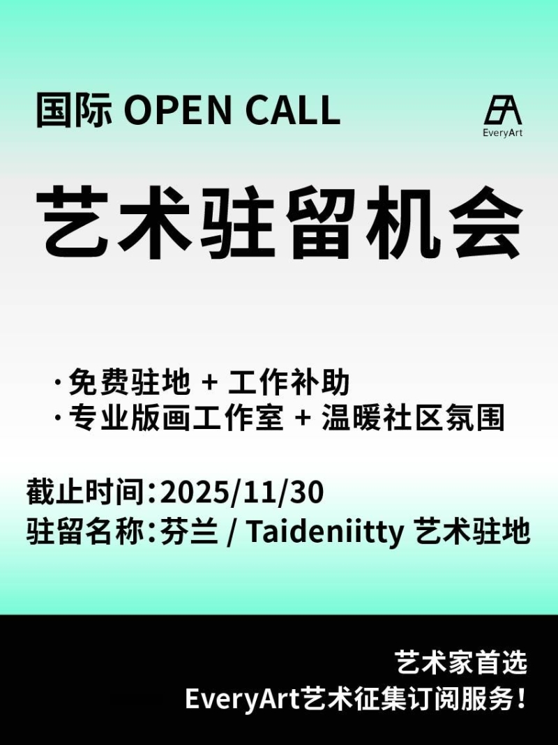 2025-10-31 临期|征集资讯 #艺术驻留 #国际艺术驻留 0 评论 47 喜欢 分享 白雪松 自我介绍一下吧~ 查看TA的全部内容 +关注 EveryArt 去发现更多有趣内容 微信扫码打开EveryArt小程序 体验更多「EveryArt」新功能 评论 0 我也来讲两句