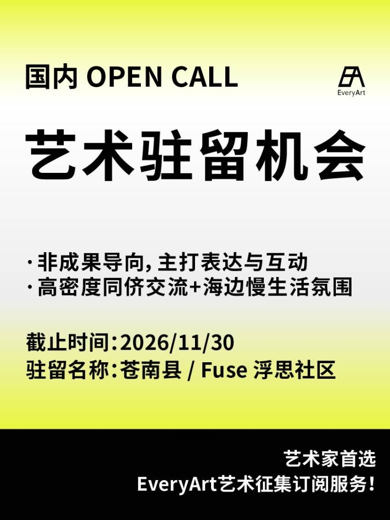 2025-10-31 临期|征集资讯 #国内艺术驻留 #艺术驻留 0 评论 48 喜欢 分享 白雪松 自我介绍一下吧~ 查看TA的全部内容 +关注 EveryArt 去发现更多有趣内容 微信扫码打开EveryArt小程序 体验更多「EveryArt」新功能 评论 0 我也来讲两句
