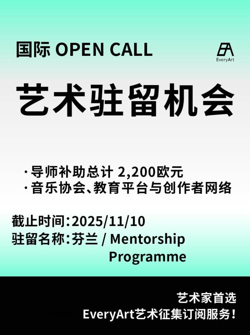 2025-11-10 临期|征集资讯 #艺术驻留 #国际艺术驻留 0 评论 49 喜欢 分享 白雪松 自我介绍一下吧~ 查看TA的全部内容 +关注 EveryArt 去发现更多有趣内容 微信扫码打开EveryArt小程序 体验更多「EveryArt」新功能 评论 0 我也来讲两句