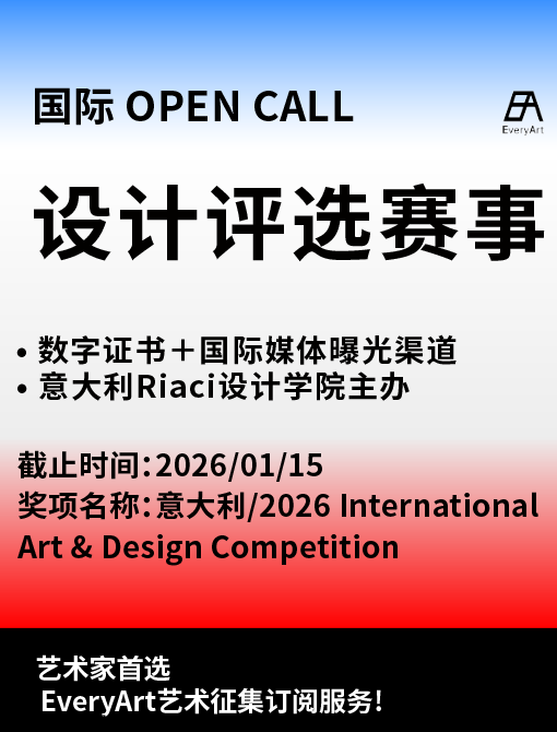 2025-11-15 全球|艺术奖项 #国际艺术大奖 #设计大奖 #艺术赛事 #意大利 0 评论 37 喜欢 分享 蛋泥 自我介绍一下吧~ 查看TA的全部内容 +关注 EveryArt 去发现更多有趣内容 微信扫码打开EveryArt小程序 体验更多「EveryArt」新功能 评论 0 我也来讲两句