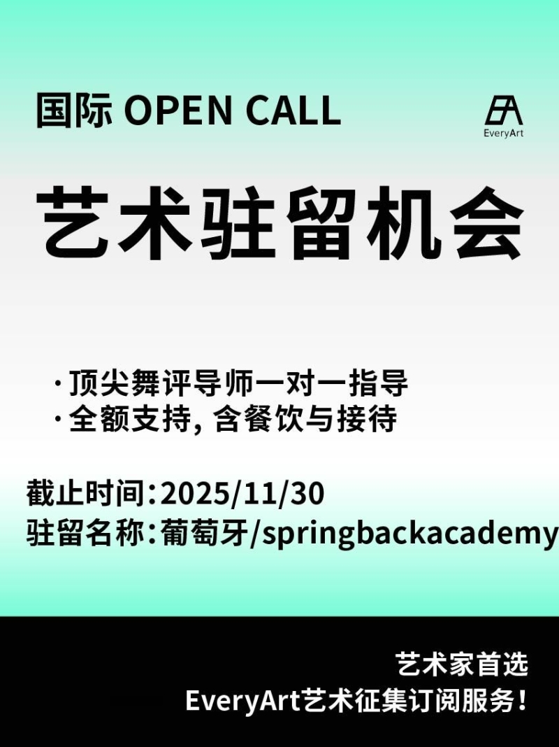 2025-11-30 临期|征集资讯 #艺术驻留 #国际艺术驻留 0 评论 43 喜欢 分享 白雪松 自我介绍一下吧~ 查看TA的全部内容 +关注 EveryArt 去发现更多有趣内容 微信扫码打开EveryArt小程序 体验更多「EveryArt」新功能 评论 0 我也来讲两句