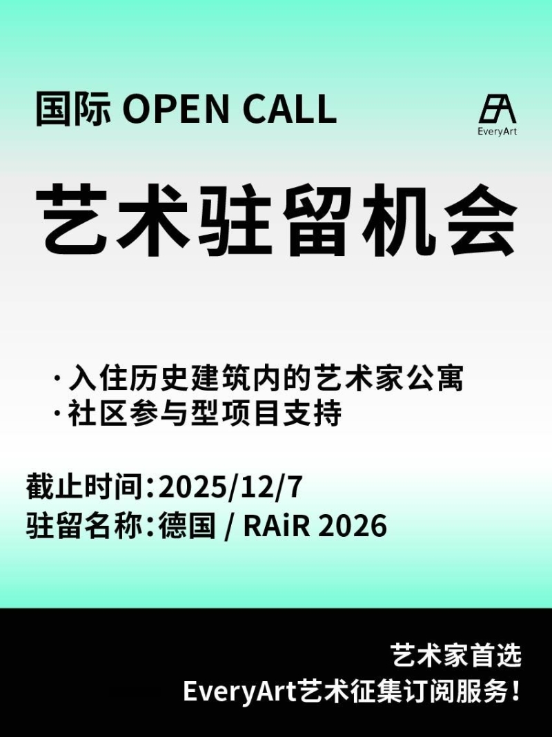 2025-11-30 临期|征集资讯 #艺术驻留 #国际艺术驻留 0 评论 53 喜欢 分享 白雪松 自我介绍一下吧~ 查看TA的全部内容 +关注 EveryArt 去发现更多有趣内容 微信扫码打开EveryArt小程序 体验更多「EveryArt」新功能 评论 0 我也来讲两句