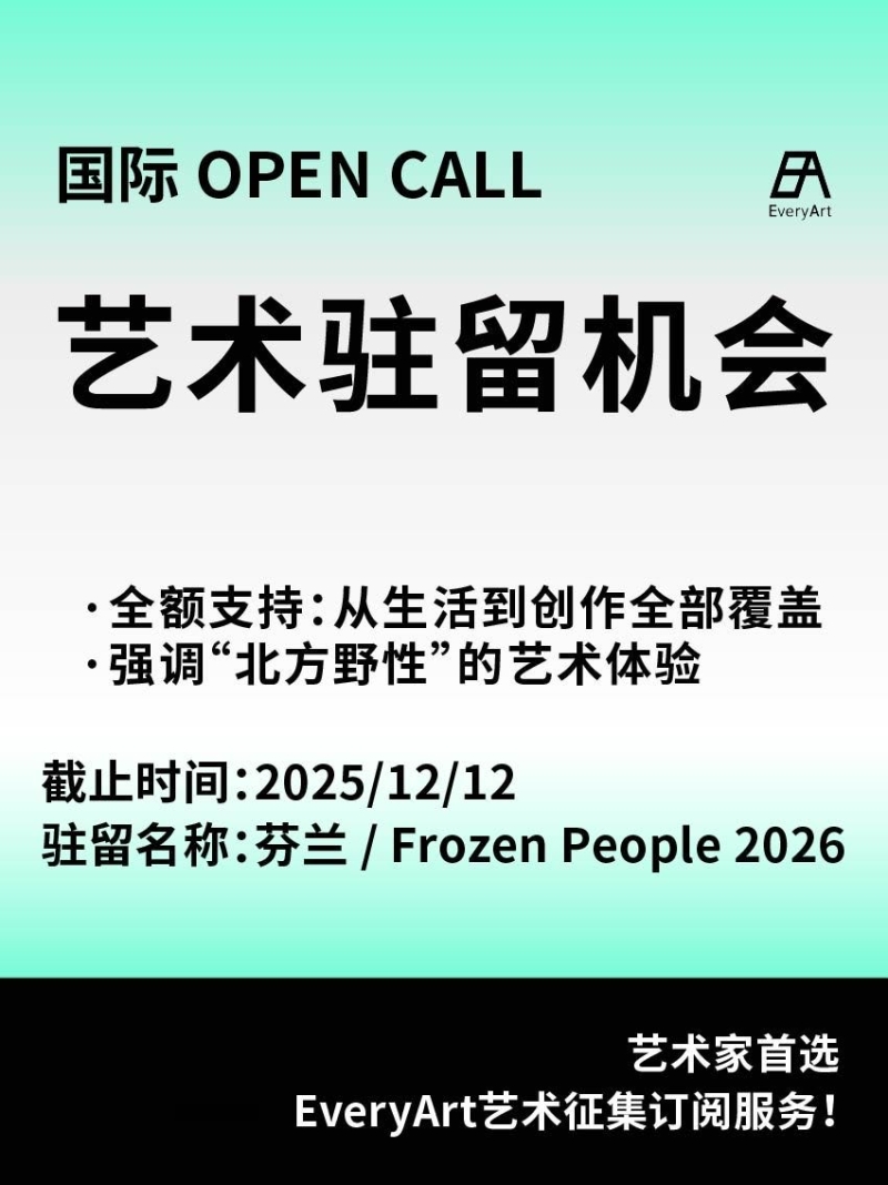2025-12-01 临期|征集资讯 #艺术驻留 #国际艺术驻留 0 评论 63 喜欢 分享 白雪松 自我介绍一下吧~ 查看TA的全部内容 +关注 EveryArt 去发现更多有趣内容 微信扫码打开EveryArt小程序 体验更多「EveryArt」新功能 评论 0 我也来讲两句
