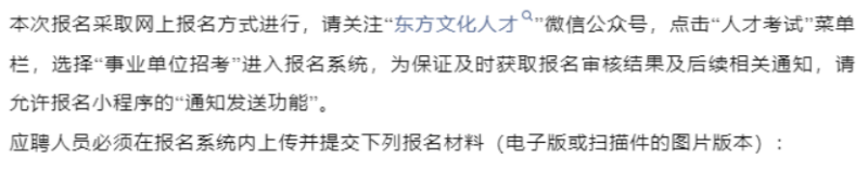 笔试时间、准考证下载时间、笔试成绩查询时间等另行通知,详情请关注“东方文化人才”人才考试栏目的有关通知。