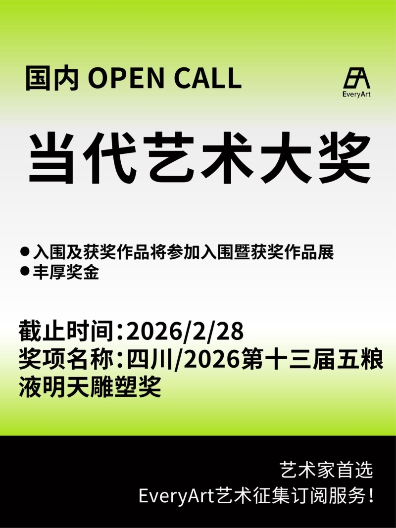 2026-01-01 全球|艺术奖项 #艺术大奖 #国内艺术大奖 #设计大奖 #艺术赛事 0 评论 29 喜欢 分享 Wann 自我介绍一下吧~ 查看TA的全部内容 +关注 EveryArt 去发现更多有趣内容 微信扫码打开EveryArt小程序 体验更多「EveryArt」新功能 评论 0 我也来讲两句