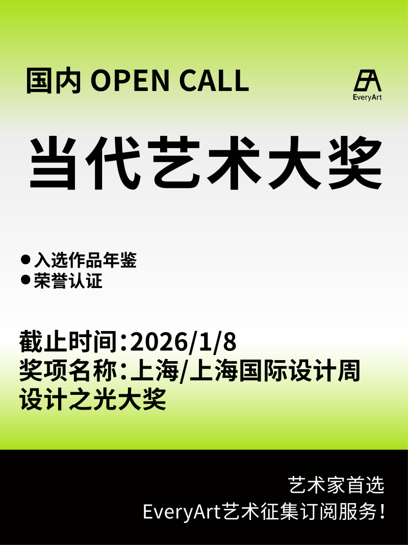 2026-01-05 全球|艺术奖项 #艺术大奖 #国内艺术大奖 #设计大奖 #艺术赛事 0 评论 40 喜欢 分享 Wann 自我介绍一下吧~ 查看TA的全部内容 +关注 EveryArt 去发现更多有趣内容 微信扫码打开EveryArt小程序 体验更多「EveryArt」新功能 评论 0 我也来讲两句