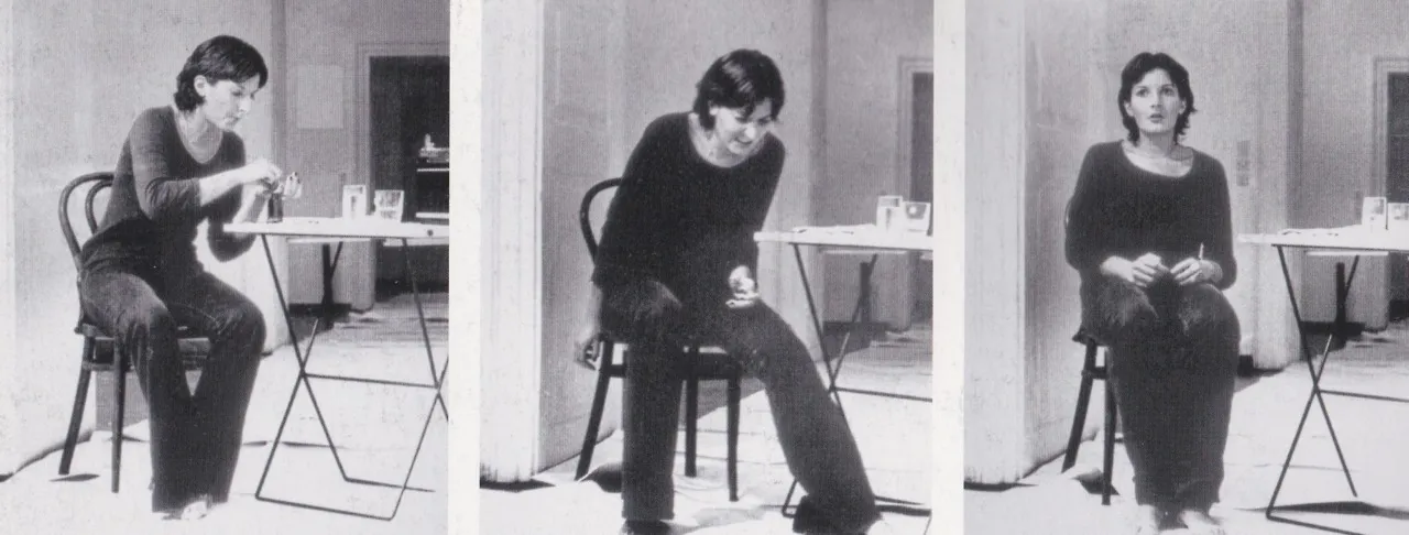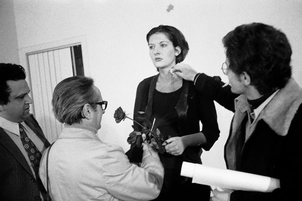 阿布拉莫维奇的创作以身体、时间、痛感、耐力、意识与观看关系为核心。她将自身身体视为媒介,通过长时间、重复性或高强度的行为,将艺术从“被观看的对象”转化为一种真实发生的经验。她的作品往往不以结果为目标,而是强调过程本身的存在与持续——在极限状态中,迫使观众直面自身的感知、情绪与道德边界。在其早期作品中,阿布拉莫维奇通过自我伤害、体力消耗与危险行为,探讨身体与权力、控制与服从的关系;而在后期实践中,她逐渐将关注点转向凝视、静止、时间的延展与精神层面的专注。代表作《Rhythm 0》《The Artist Is Present》《Balkan Baroque》等,已成为行为艺术史上的标志性作品。