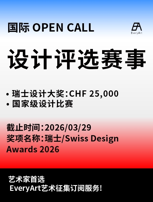 2026-01-23 全球|艺术奖项 #国际艺术大奖 #设计大奖 #艺术赛事 #瑞士 0 评论 39 喜欢 分享 蛋泥 自我介绍一下吧~ 查看TA的全部内容 +关注 EveryArt 去发现更多有趣内容 微信扫码打开EveryArt小程序 体验更多「EveryArt」新功能 评论 0 我也来讲两句