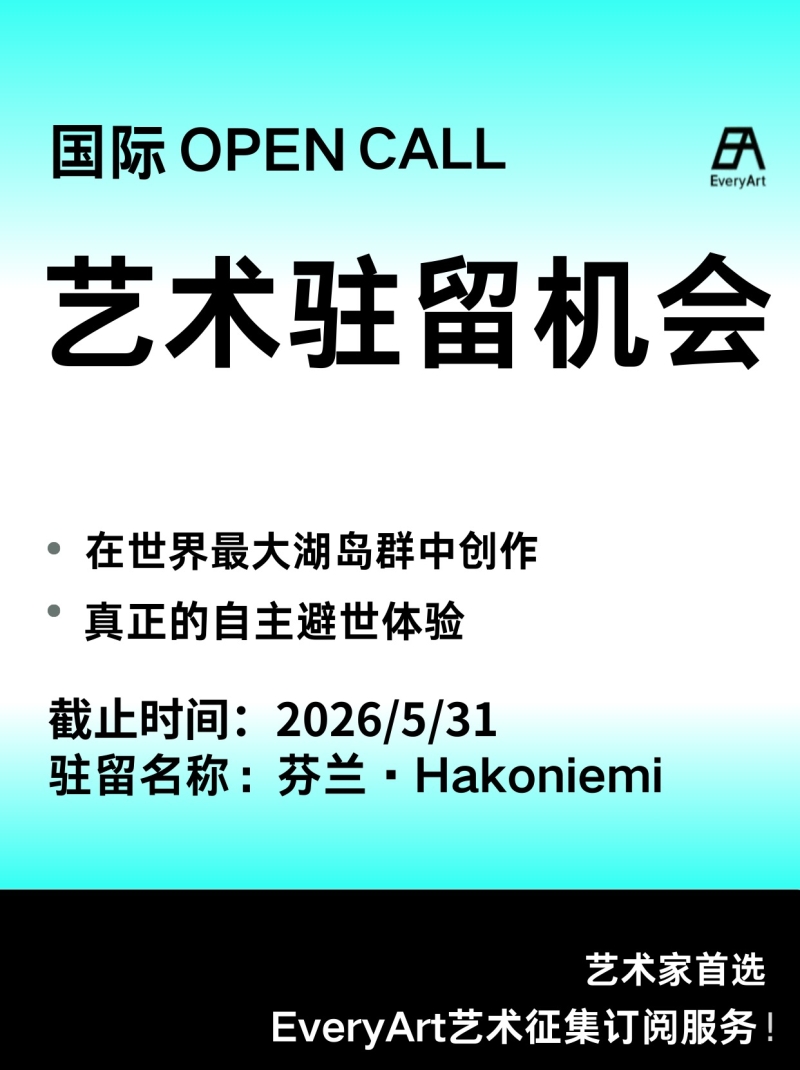 2026-02-03 全球|艺术驻留 0 评论 35 喜欢 分享 Baejeta 自我介绍一下吧~ 查看TA的全部内容 +关注 EveryArt 去发现更多有趣内容 微信扫码打开EveryArt小程序 体验更多「EveryArt」新功能 评论 0 我也来讲两句