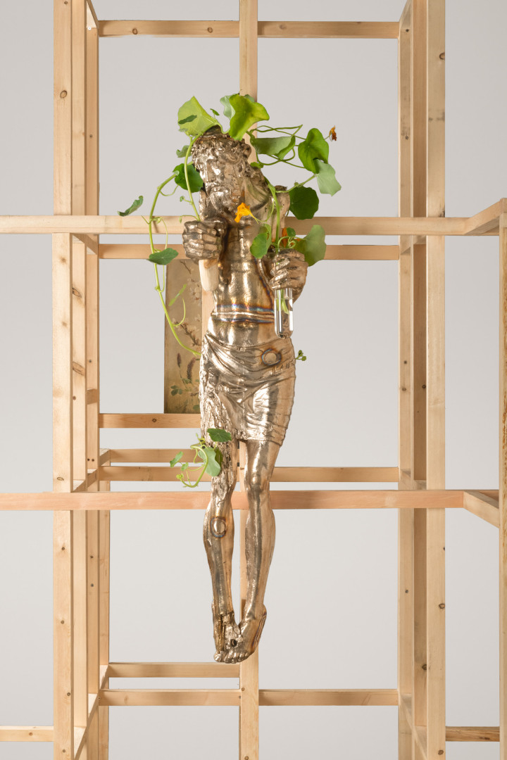 宗教与殖民遗产是 Danh Vo 创作中反复出现的重要主题。天主教图像、拉丁文书信、法国殖民遗物、美国政治象征等元素常常在同一空间中并置,使权力结构以一种去中心化的方式显现出来。他关注的并非单一文化身份,而是文化如何在全球流动与政治结构中被改写、重命名与误认。Danh Vo 的作品常常涉及“转移”与“复制”。例如,他将自由女神像的铜板按原比例复制并拆解,作为独立片段在不同空间中展出。这种处理方式并非简单的再现,而是对国家象征、民主神话与全球权力结构的再审视。在拆解与重组之间,历史的“完整性”被质疑,象征的稳定性被动摇。