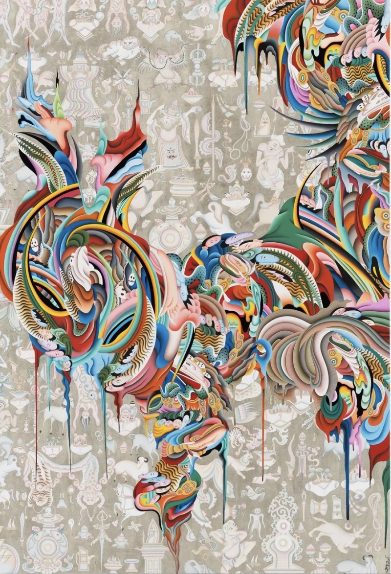 ◾️关于艺术家: 雪林·夏帕于1968年出生于尼泊尔加德满都(Kathmandu),目前工作生活于加德满都和北加州之间。他接受了父亲乌尔根多杰大师(Master Urgen Dorje)的唐卡绘画训练,并运用于创作融合佛教图像学和流行文化的作品。在其创作中提供了神圣/世俗、传统/当代、静态/流动之间的相互作用和张力。夏帕的艺术实践源于他居住于喜马拉雅山地的亲身经历以及喜马拉雅当地人的游牧历史。他对视觉语言的实验性探索,通过改编、重新想象和挪用身份、符号、颜色和手势等元素,并超越它们原本的时间和文化限制。 夏帕曾在美国、欧洲和亚洲等各地展出,包括代表尼泊尔首次参加2022年威尼斯双年展。他还曾参与横滨三年展(2020);银川双年展(2018);加德满都三年展(2017);亚太当代艺术三年展,布里斯班(2015-16);以及达卡艺术峰会(2014)等大型艺术展会。其作品被收藏于世界各地艺术机构与私人收藏中,包括英国维多利亚和阿尔伯特博物馆(V&A);纽约鲁宾艺术博物馆(Rubin Museum of Art);澳大利亚昆士兰美术馆和现代艺术画廊(Queensland Art Gallery & Gallery of Modern Art);旧金山亚洲艺术博物馆(Asian Art Museum);弗吉尼亚美术博物馆(Virginia Museum of Fine Arts;);利物浦世界博物馆(World Museum,);达卡桑达尼艺术基金会(Samdani Arts Foundation)以及乌利·希克艺术收藏。2022年2月,弗吉尼亚美术博物馆则举办了雪林·夏帕的首次美术馆回顾展。