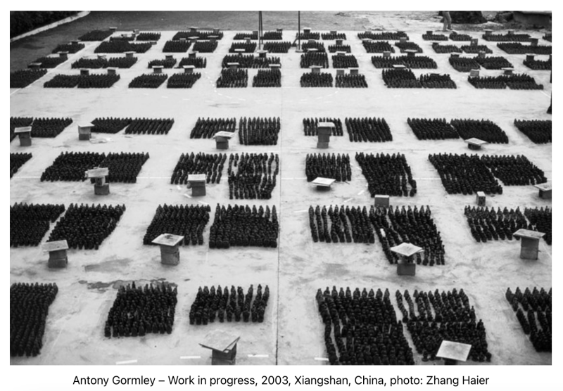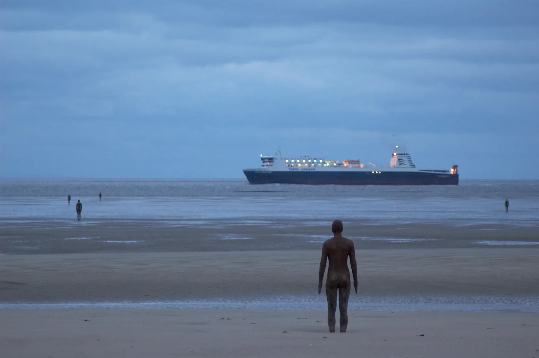在材料与结构层面,Gormley 逐渐从具象人体过渡至几何化与网格化形式。作品如《Another Place》《Event Horizon》《Angel of the North》等,将人体置于海岸、城市高楼或开阔荒野之中,使雕塑成为地景的一部分。这种大尺度公共装置并不强调纪念性,而是通过重复与分布,改变观众对空间的感知方式。身体不再是叙事中心,而成为一种“尺度装置”,重新定义观看与行走的体验。