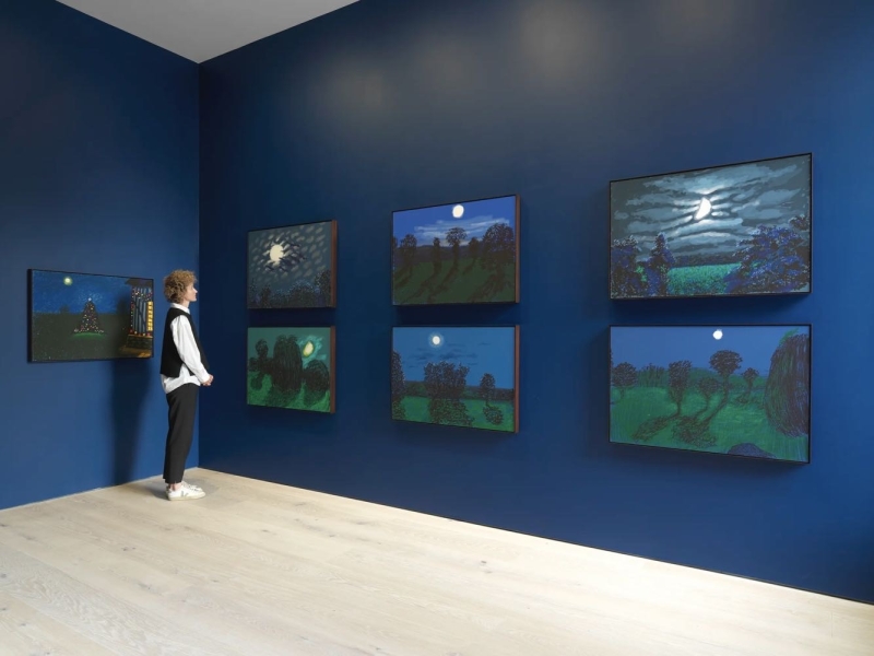◾️ 关于艺术家: David Hockney(生于 1937 年,英国) 是 20 世纪后半叶至今最具影响力的艺术家之一,以色彩饱满、形式开放的绘画闻名。他长期挑战线性视角的传统,强调视觉体验中的多点视角与动态观看,让图像如同记忆与感知的展开。本次展览的多幅新作是在伦敦工作室近半年创作的“超级新画”,在构图与色彩上充满节奏感;同时首次在英国完整呈现了他的 “The Moon Room” 系列——由他在诺曼底用 iPad 绘制的夜空图像,强调光影与自然之美的细致观察。