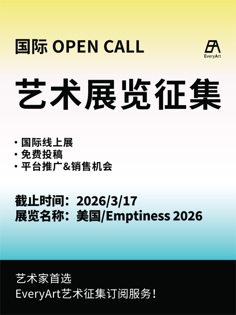 2026-02-28 国际|展览征集 #美国 #国际线上展览 #Exhibizone #Emptiness 2026 0 评论 43 喜欢 分享 Lili 国际展览征集 ☕️|当代艺术家分享 🔖 查看TA的全部内容 +关注 EveryArt 去发现更多有趣内容 微信扫码打开EveryArt小程序 体验更多「EveryArt」新功能 评论 0 我也来讲两句
