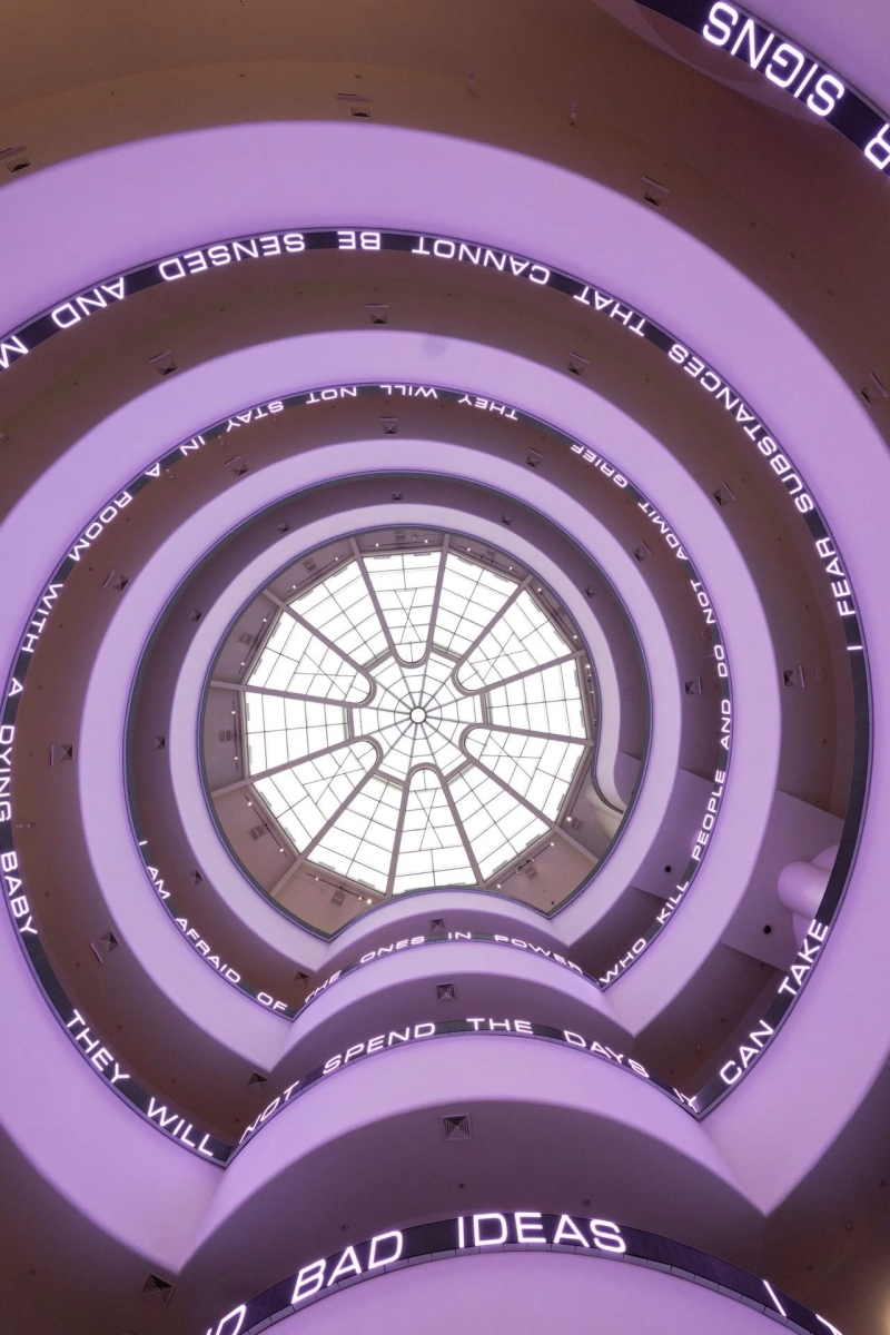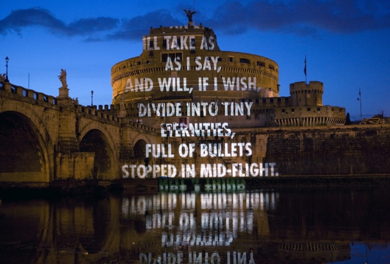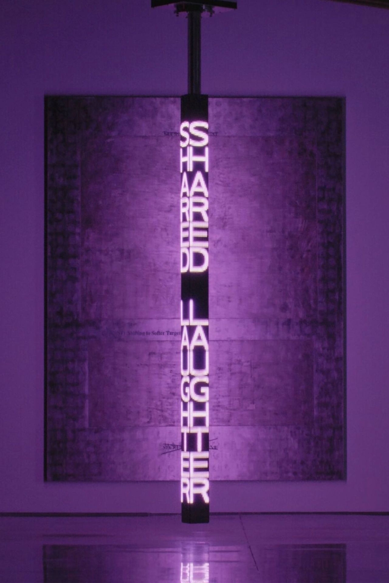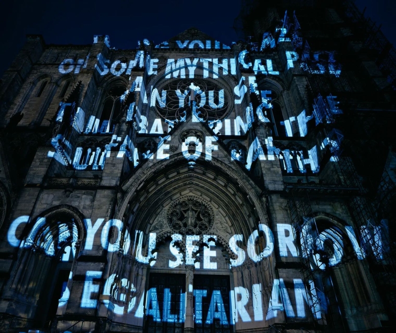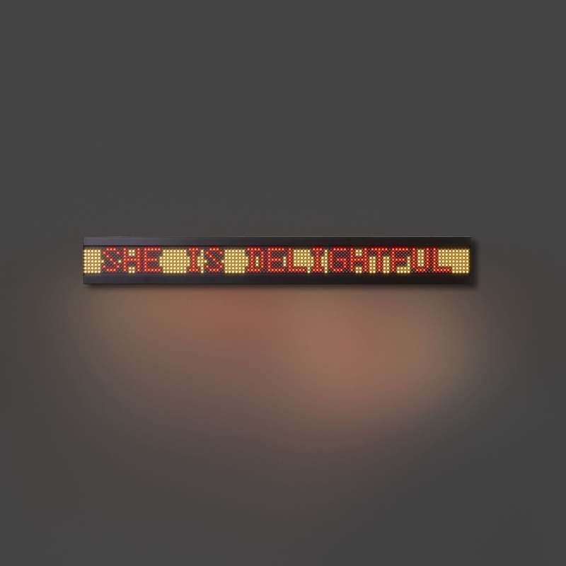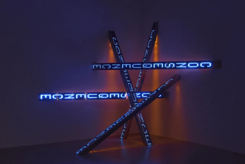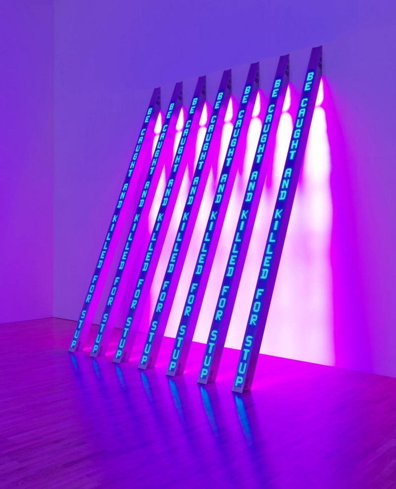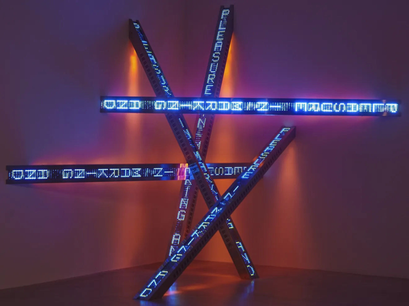 随着创作的发展,Holzer 开始将文字与技术媒介结合。她在城市建筑、纪念性空间以及大型公共场所使用 LED 电子屏幕、灯光投影和滚动字幕,使文字在空间中持续流动。她的作品既像新闻播报,也像政治宣言,使观众在阅读的过程中不断意识到语言与权力之间的关系。这种将信息传播形式转化为艺术语言的方式,使她在当代观念艺术中形成独特而清晰的创作路径。