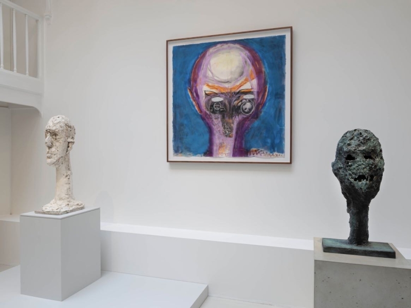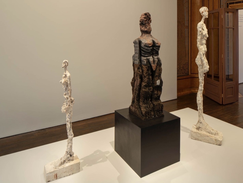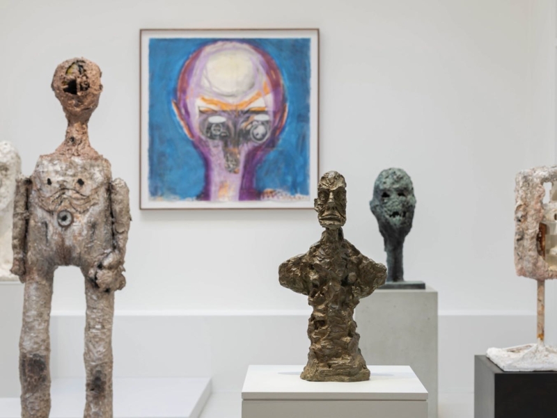 ◾️ 关于艺术家: Alberto Giacometti(1901–1966) 是 20 世纪最具影响力的雕塑家之一,以细长的人体雕塑闻名,他的作品常表现存在主义式的孤独与人类处境的脆弱性。与之对话的艺术家 Huma Bhabha(1962 年生于巴基斯坦卡拉奇) 现生活和工作于纽约,她以粗粝、具有原始感的雕塑语言著称,常使用石膏、黏土、青铜或拾得材料构建出混合人类与动物特征的形象。两位艺术家的作品虽来自不同年代,却都关注人体在力量与脆弱之间的张力,并通过碎片化与变形的形态探讨人类存在的复杂性。