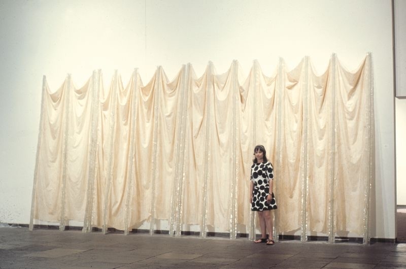 Eva Hesse(1936—1970)是20世纪极具影响力的女性艺术家之一,也是后极简主义(Post-Minimalism)的重要代表人物。她出生于德国汉堡的一个犹太家庭,1939年因纳粹迫害随家人移民至美国,并在纽约成长。她先后就读于普拉特学院(Pratt Institute)、库珀联盟学院(Cooper Union)以及耶鲁大学艺术学院(Yale School of Art),在耶鲁期间师从著名艺术家约瑟夫·阿尔伯斯(Josef Albers)。毕业后,她逐渐在纽约当代艺术圈中崭露头角,并在短暂而高强度的艺术生涯中创作出一系列具有重要影响力的作品。