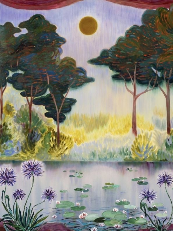 ◾️ 关于展览: 《My time here is brief》 是英国艺术家 Freya Douglas-Morris 在伦敦 Lehmann Maupin 举办的个展,也是她加入画廊项目后的首次展览。展览呈现一组全新油画作品,画面描绘充满光感与色彩的梦境般风景:宁静的水域、月光下的湖泊、树苗与繁茂植被等景象在画面中相互延展,形成一个连续而流动的自然世界。作品通过季节更替与昼夜循环的节奏,探讨人与自然之间的情感联系,以及记忆如何塑造我们对“地方”的感知。