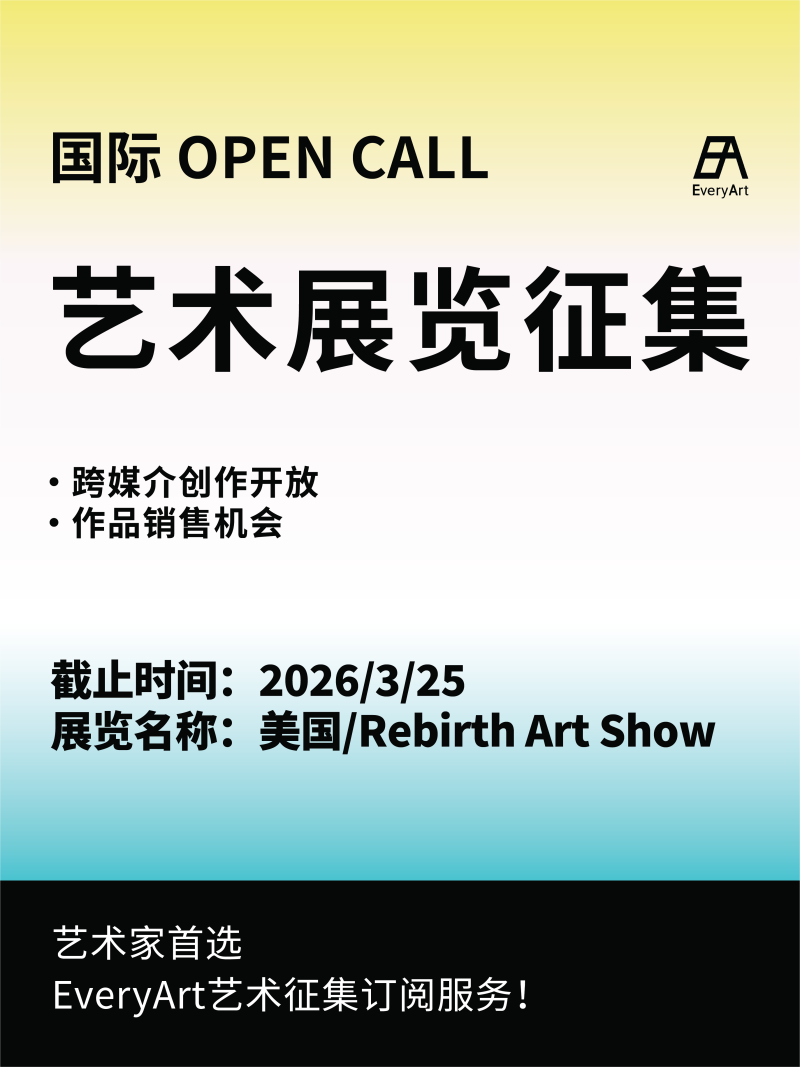2026-03-23 国际|展览征集 #美国 #Rebirth Art Show #Gallery 86 #重生艺术展 0 评论 42 喜欢 分享 Lili 国际展览征集 ☕️|当代艺术家分享 🔖 查看TA的全部内容 +关注 EveryArt 去发现更多有趣内容 微信扫码打开EveryArt小程序 体验更多「EveryArt」新功能 评论 0 我也来讲两句