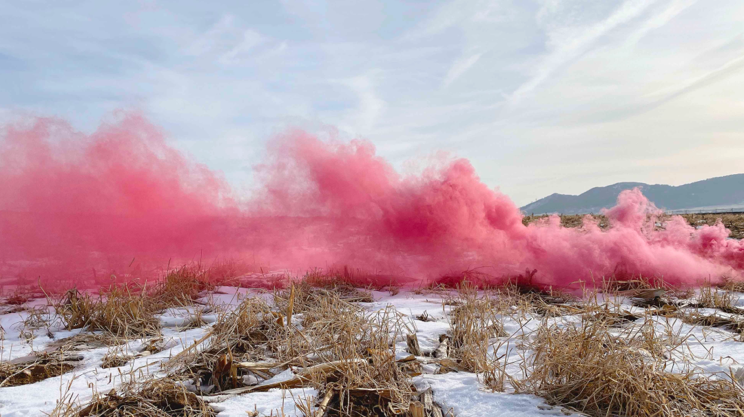王立秋,出生于辽宁省阜新市,蒙古族。本科毕业于鲁迅美术学院,硕士毕业于伦敦艺术大学。作为一名蒙古族的东北姑娘,她的作品源于个人的亲身经历,其语境就是她的家乡,她希望能通过她的作品或可使观众获得更清晰的身份认同及思考,为处于现代困境中的我们寻求一种应对。在她的《无题》系列视觉实验中,采用了烟雾作为视觉主体。拍摄地点选在她家乡废弃的部队建筑,荒芜的农田,农村院子里巨大的铁笼。在荒芜的大地上飘起粉红的烟雾,象征着被禁锢的情感欲望。烟雾的随机性再也不是接收者最初期待的模样,也是它在心中的魅力所在。